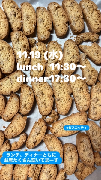 今日、明日とランチ&ディナーともにお席たくさん空いてまーす(^。^)
