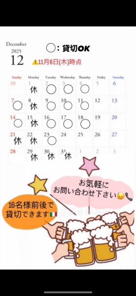 12月の貸切のご案内です(^^)